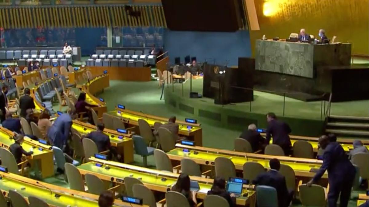 Постпред России при ООН Василий Небензя предлагал проголосовать тайно, но его вариант даже не стали рассматривать. Вместо этого Албания поставила вопрос об открытом голосовании:107 делегаций поддержали предложение, 13 выступили против, 39 воздержались.