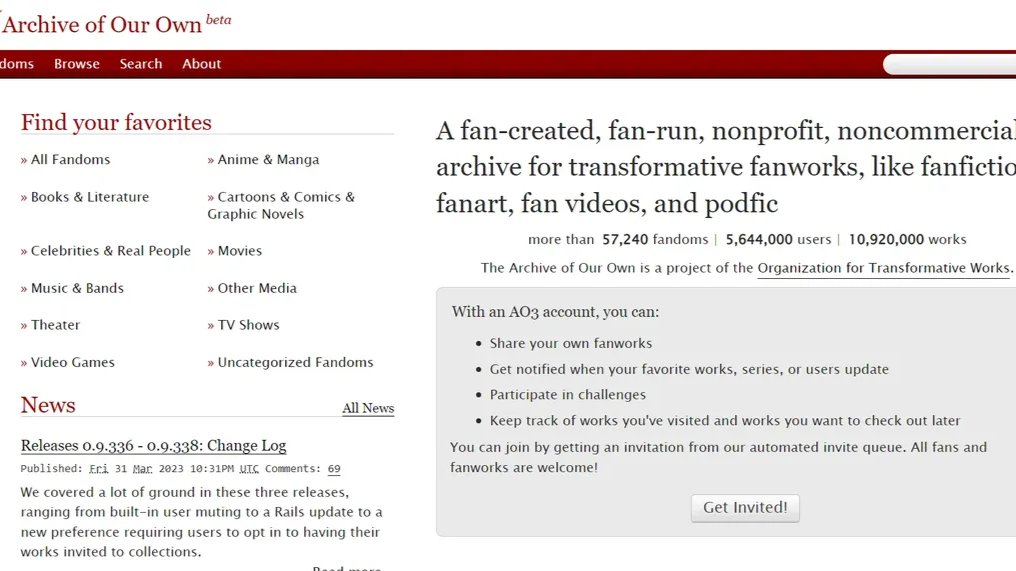 Archive of Our Own is one of the largest and most well known fanfiction repositories in the world. Most stories are written in English. As of December 2022, the website has more than 10 million stories published in more than 50,000 fandoms. In Russia, the service is not as popular as others.