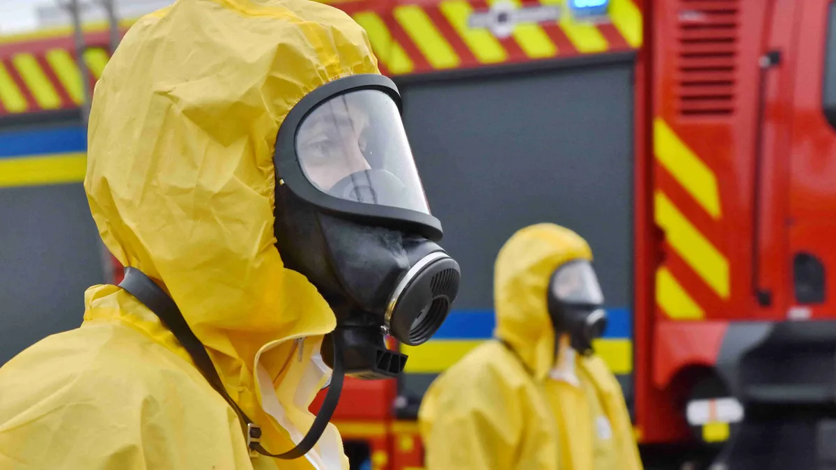 Украинские спасатели в костюмах радиационной защиты во время подготовки к возможной аварии на Запорожской АЭС, 29 июня 2023 года. Фото: Andriy Andriyenko / SOPA Images / LightRocket / Getty Images