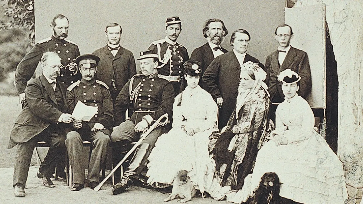 Цесаревич Александр Александрович (в центре) и действительный тайный советник Константин Победоносцев (справа), 1869 год. Фото: Wikimedia Commons