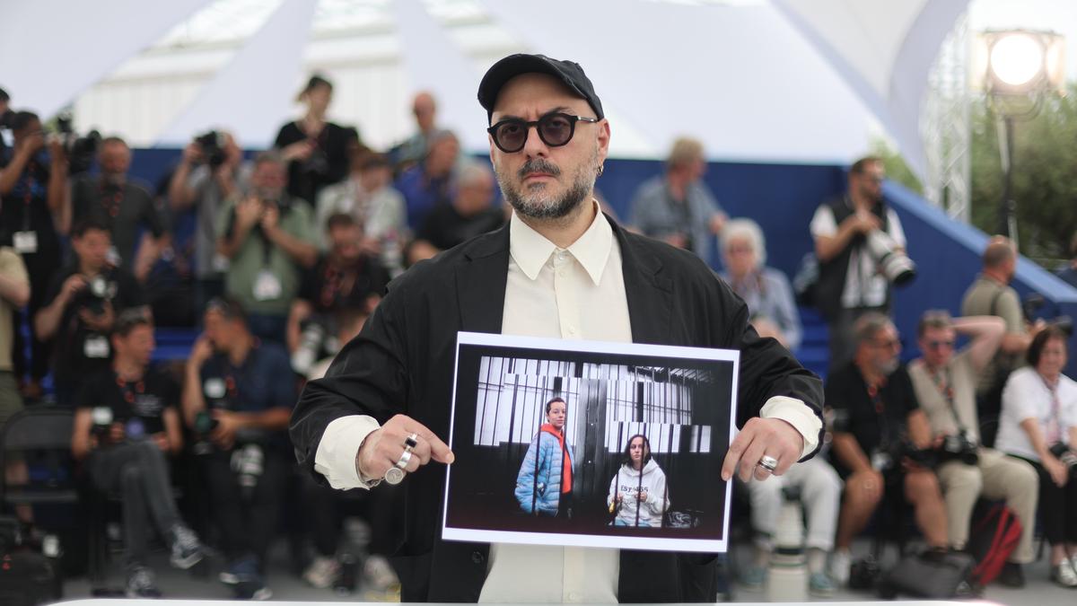 Film director Kirill Serebrennikov appeared with a photo of two fellow artists facing lengthy jail sentences in his native Russia at a press conference for the première of his film Limonov: The Ballad at the Cannes Film Festival in France on Monday.