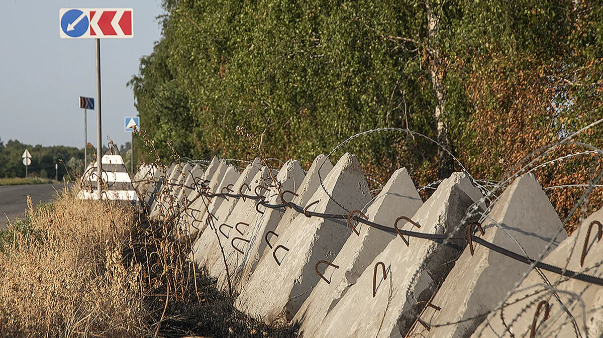 Сваленные в кучу бетонные «Зубы дракона» в белгородской области. Фото: Анатолий Ольшанский
