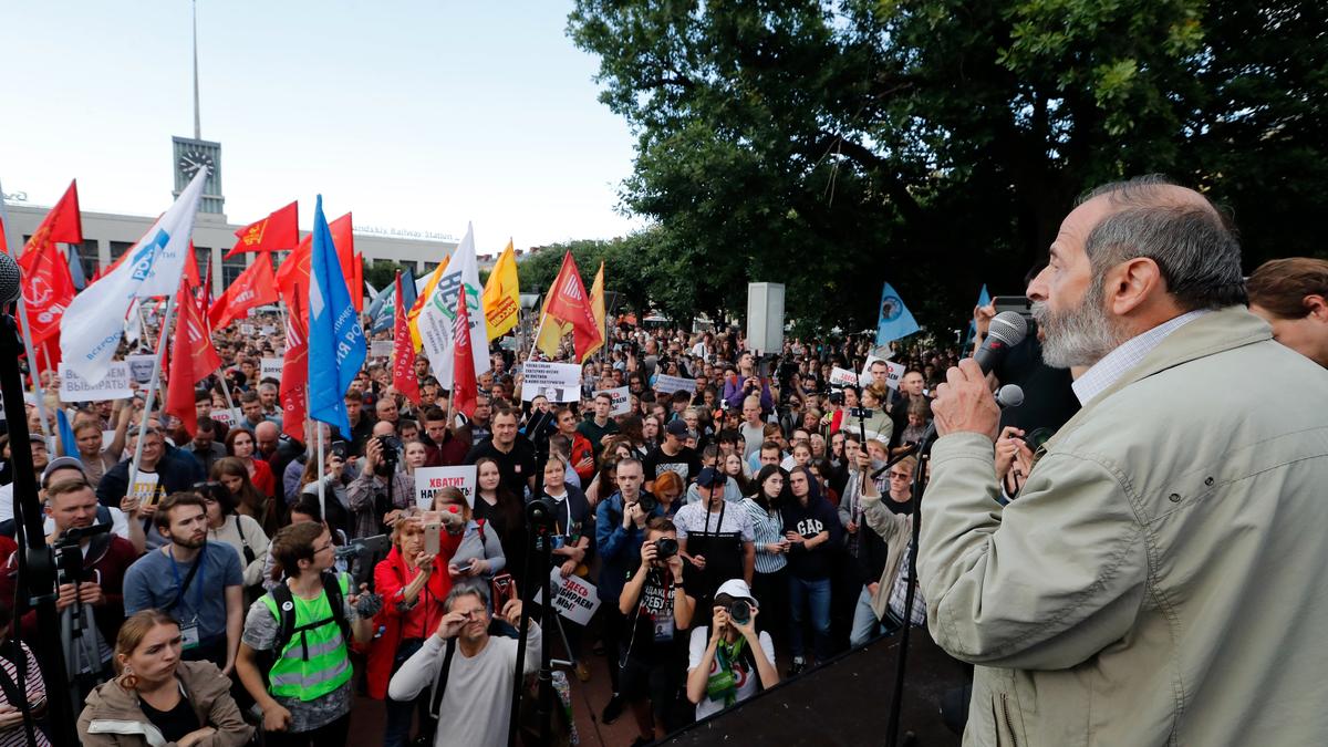 Boris Vishnevsky addresses an opposition rally in St. Petersburg, 24 July 2019. Photo: EPA-EFE / ANATOLY MALTSEV
