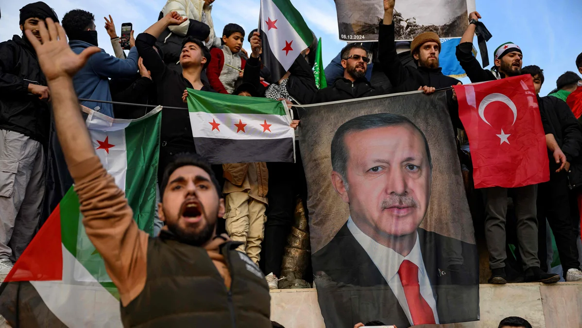 Плакат с изображением Эрдогана на митинге после свержения Асада, Стамбул, Турция, 8 декабря 2024 года. Фото: Yasin Akgul / AFP / Scanpix / LETA