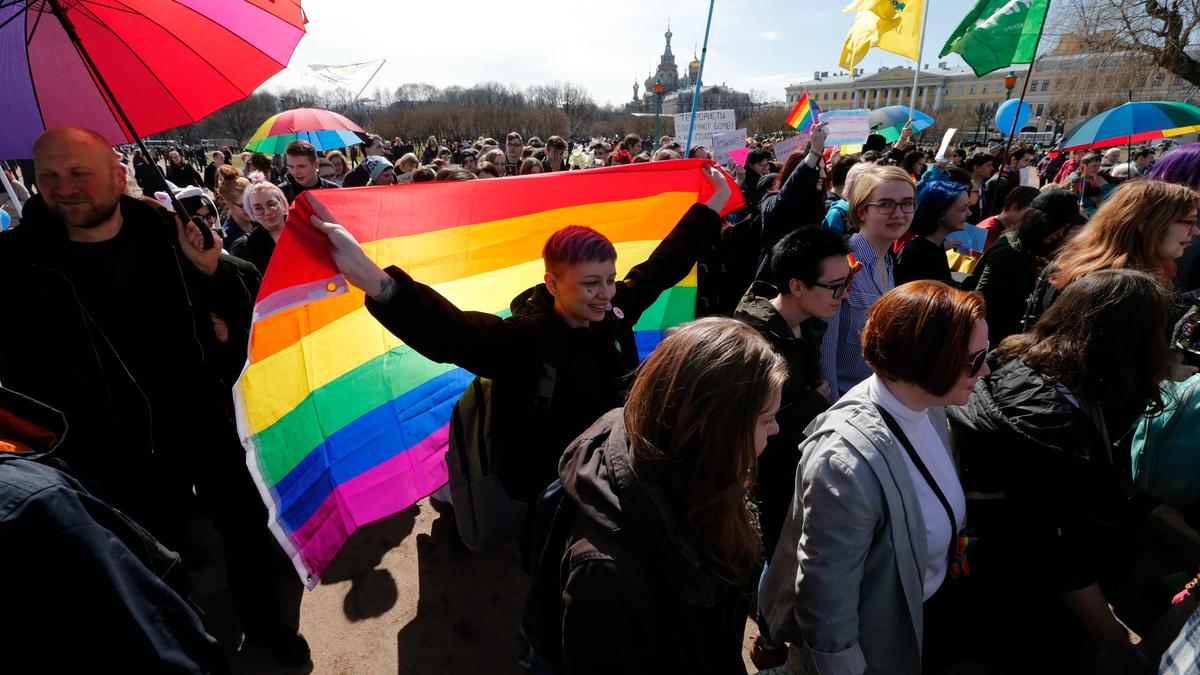 LGBT activists march in Russia’s second city of St. Petersburg, 1 May 2017. Photo: EPA / ANATOLY MALTSEV