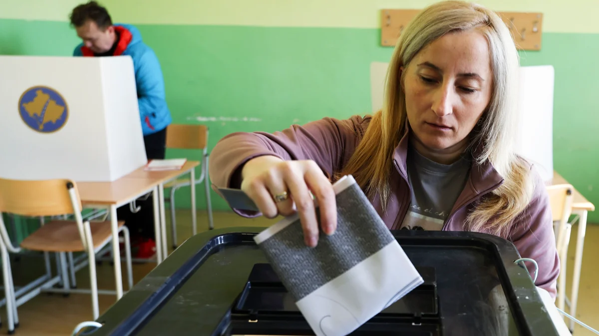 Избирательница голосует на парламентских выборах в Грачанице, Косово, 9 февраля 2025 года. Фото: Georgi Licovski / EPA