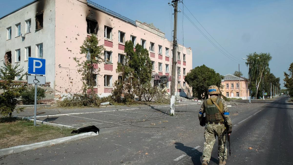 A Ukrainian serviceman in the centre of Sudzha, Kursk region, Russia, 21 August 2024. Photo: EPA-EFE/STRINGER