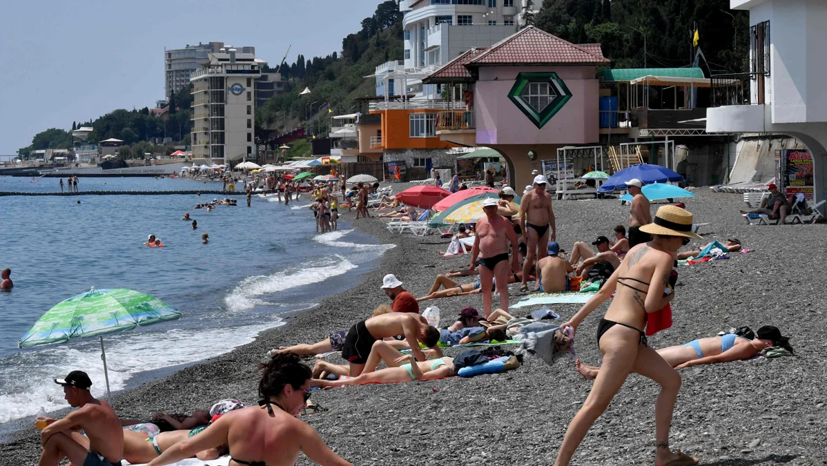 Отдыхающие на побережье в Ялте, Крым, 24 июля 2023 года. Фото: EPA