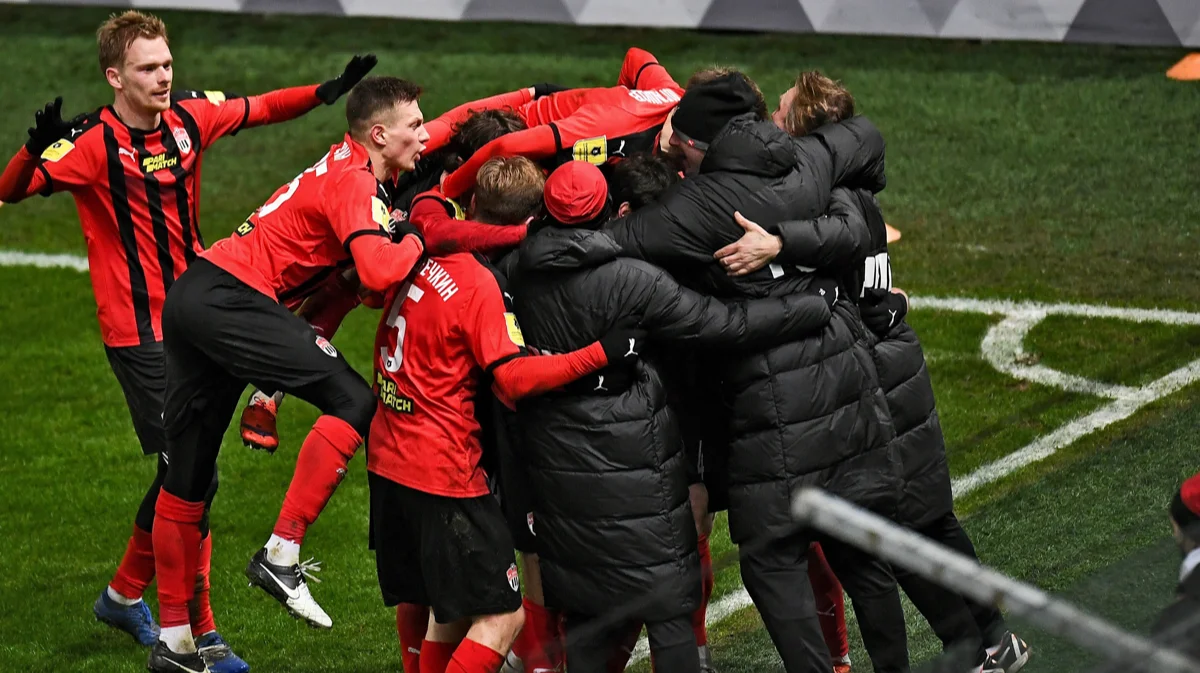 Команда футбольного клуба «Химки» во время матча против «Локомотива» (Москва) на стадионе «Арена Химки», 17 декабря 2020 года. Фото: Иван Водопьянов / Коммерсантъ / Sipa USA / Vida Press