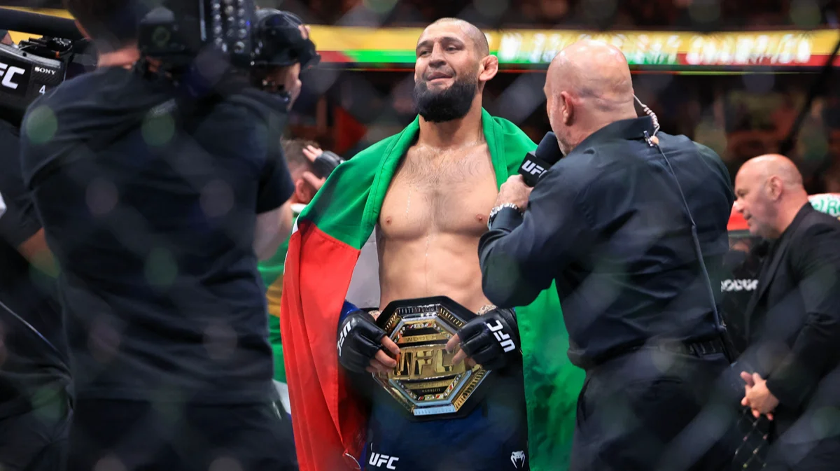 «Чеченцы, пояс у нас! Для чеченца не проблема еще один завоевать. Чеченская молодежь, давайте работать. Аллаху акбар! Ахмат — сила! Дустум [кличка Адама Кадырова.Прим. авт.], привожу тебе эту железяку [чемпионский пояс]. В Дубае увидимся», — прокричал прямо с октагона 31-летний Хамзат Чимаев после своей девятой подряд победы в UFC.