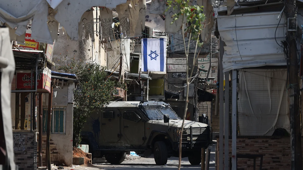Автомобили израильской армии движутся по улицам во время военной операции в лагере беженцев Балата, недалеко от города Наблус, Палестина, 18 июня 2025 года