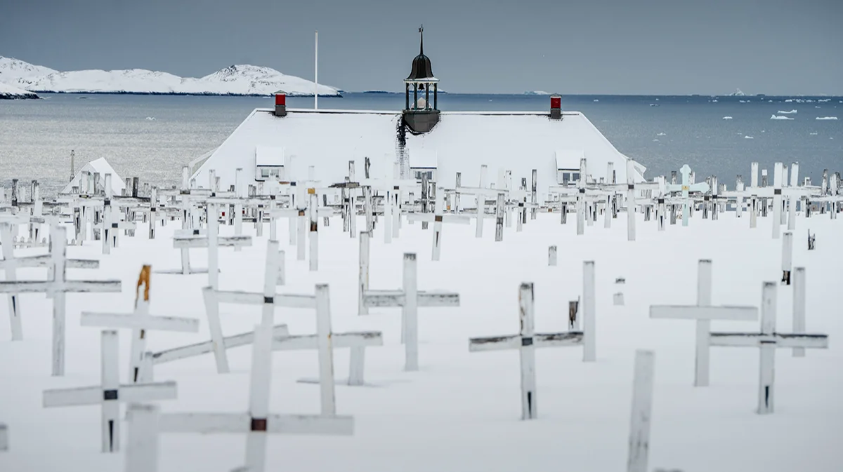 Кладбище перед зданием церкви в Нууке, Гренландия, 14 марта 2025 года. Фото: Mads Cla Rasmussen / EPA