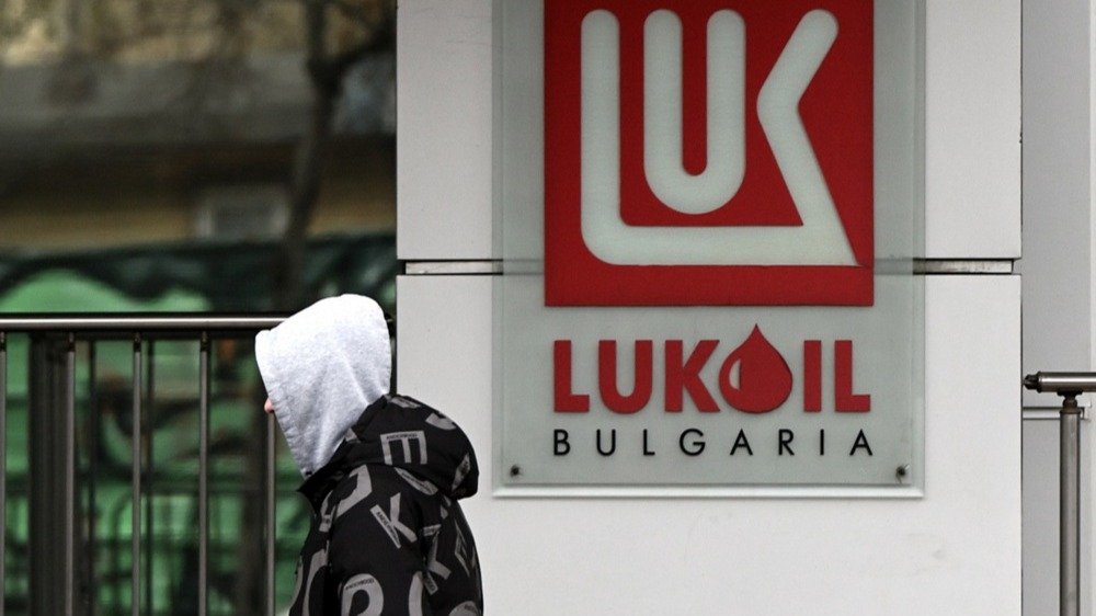 A man walks past the logo of Russian oil company Lukoil in Sofia, Bulgaria, 7 December 2023. Photo: EPA/VASSIL DONEV