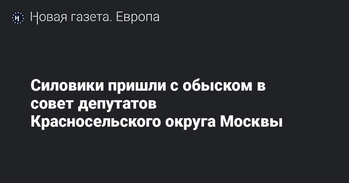 В совете депутатов Красносельского района Москвы проходит обыск. Об этом сообщил муниципальный депутат Илья Яшин.