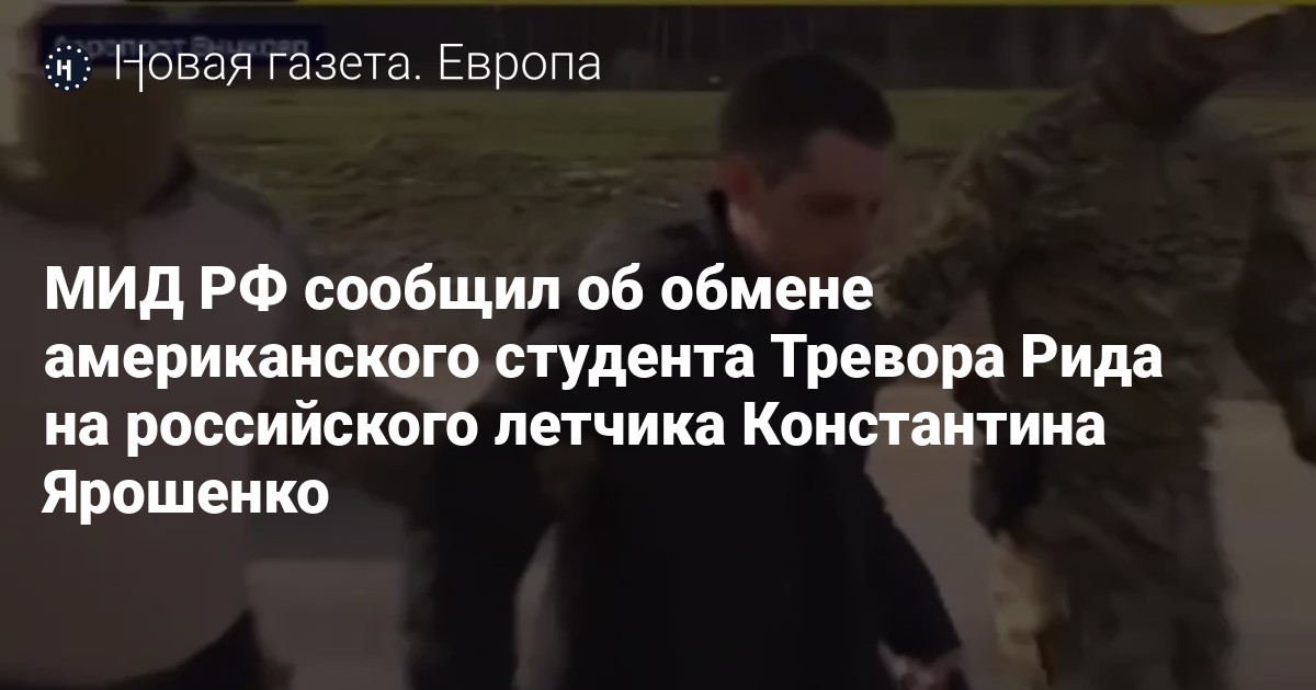 МИД РФ сообщил об обмене американского студента Тревора Рида на российского летчика Константина Ярошенко, приговоренного в США в 2011 году к 20 годам заключения. Об этом пишет РИА Новости со ссылкой на российское ведомство.