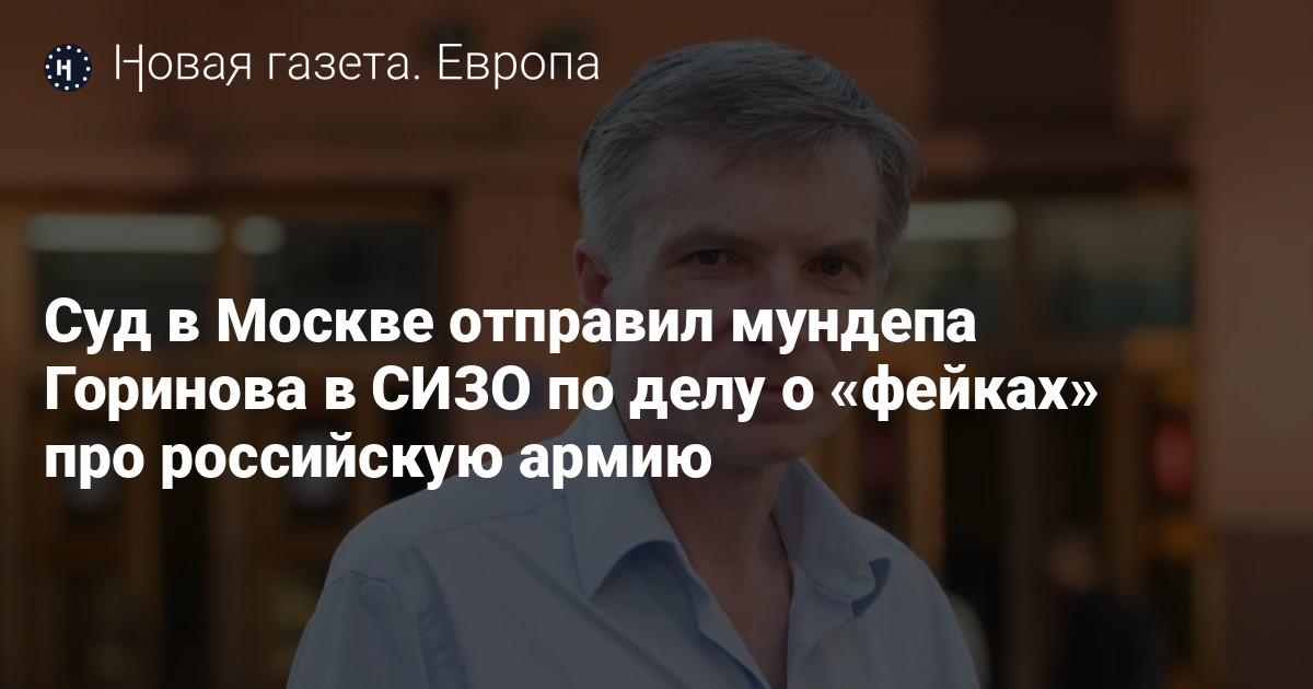 Пресненский суд Москвы отправил в СИЗО муниципального депутата Красносельского округа Алексея Горинова по делу о распространении «фейков» про действия Вооруженных сил РФ (ч. 2 ст. 207.3 УК). Об этом сообщает политик Илья Яшин.