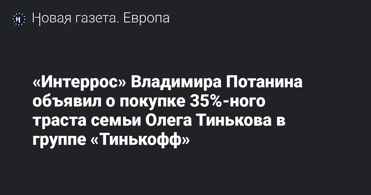 Инвестиционная компания «Интеррос» объявила о покупке 35%-ного траста семьи Олега Тинькова в TCS Group (группа «Тинькофф»). Об этом сообщила пресс-служба в своем телеграм-канале.