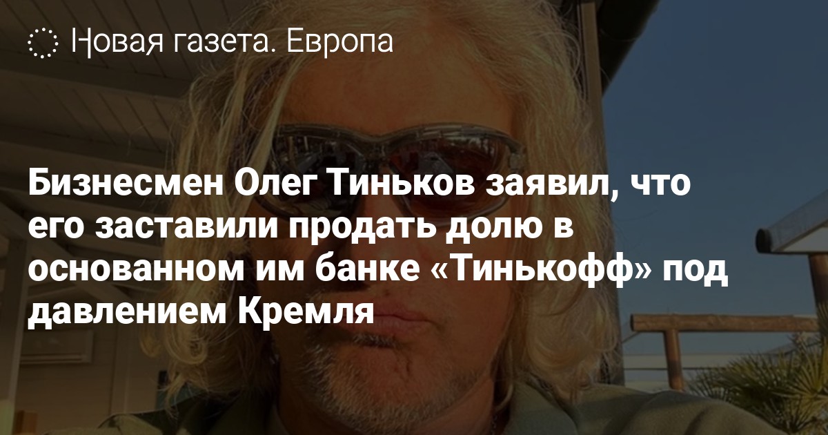 Бизнесмен Олег Тиньков в интервью газете New York Times заявил, что его заставили продать долю в основанном им банке «Тинькофф» под давлением Кремля.