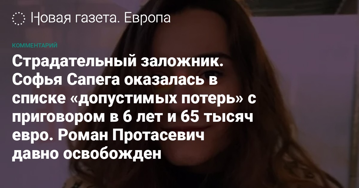 Министр иностранных дел России Сергей Лавров в середине июня говорил, что проблем с консульским доступом к Сапеге нет, что министерство держит этот вопрос на особом контроле, что фонд защиты и поддержки соотечественников, проживающих за рубежом, помогает с оплатой услуг адвоката и что ситуация будет в скором времени разрешена. Казалось, так и будет: через месяц после задержания, 24 июня, Софью Сапегу вместе с Романом Протасевичем перевели под домашний арест — в арендованный коттедж под Минском. Там Роман давал интервью на террасе, радостно жмурясь на летнем солнышке, и рассказывал, что Софья ушла в ресторан с родителями. Потом они гуляли по парку Горького в Минске, позируя фотографам и телеоператорам. В августе Роман Протасевич начал вести собственный телеграм-канал, который анонсировал как свободный от пропаганды в любом виде. Но подписчиков на его канале — лишь 2,5 тысячи. И последний пост — от 6 марта, об информационной войне Украины с Россией, с резюме «обе стороны молодцы». Дело не слишком заладилось, в общем.