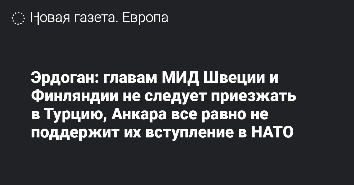 Президент Турции подчеркнул, что Швеции и Финляндии не следует утруждать себя поездками в Анкару с целью убедить государство одобрить их заявку на вступление в альянс.