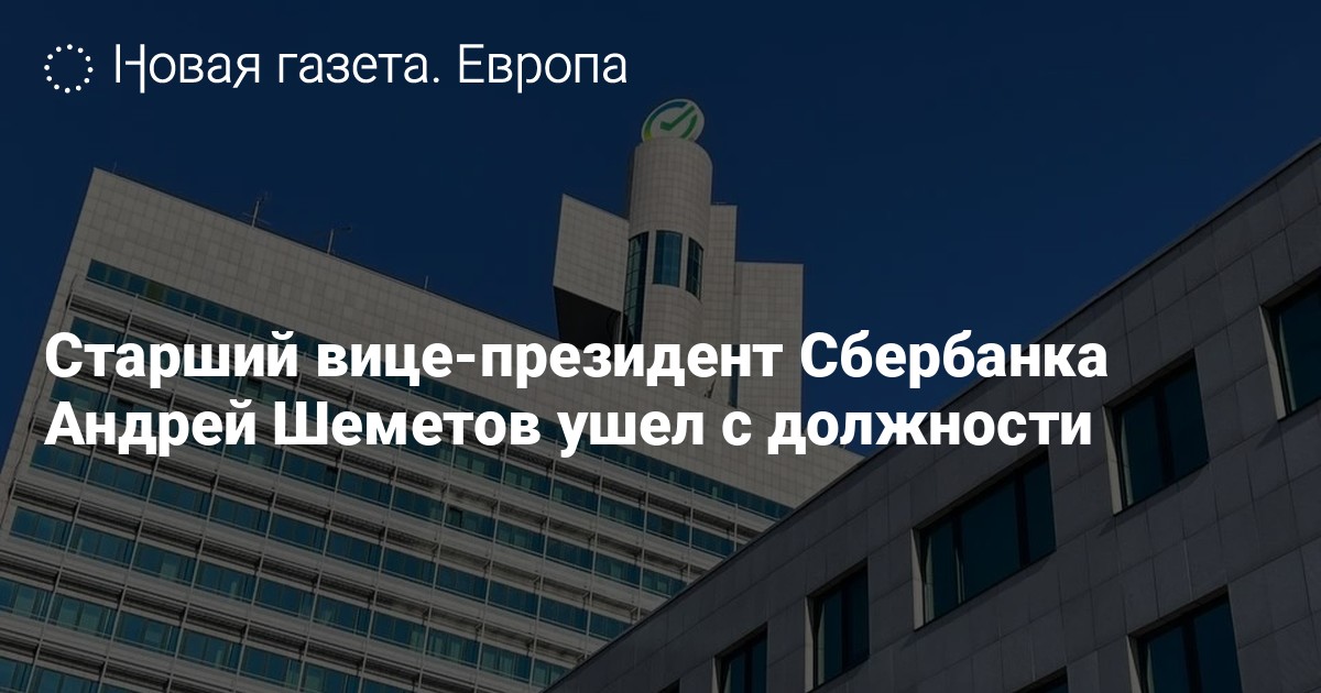 В банке заявили, что Шеметов «принял решение сфокусироваться на собственных проектах». По словам источника ТАСС, он уже почти два месяца в отпуске и все это время не появляется в банке. Источник РБК, близкий к Сбербанку, также предполагает, что решение об уходе Шеметов скорее всего принял еще раньше.