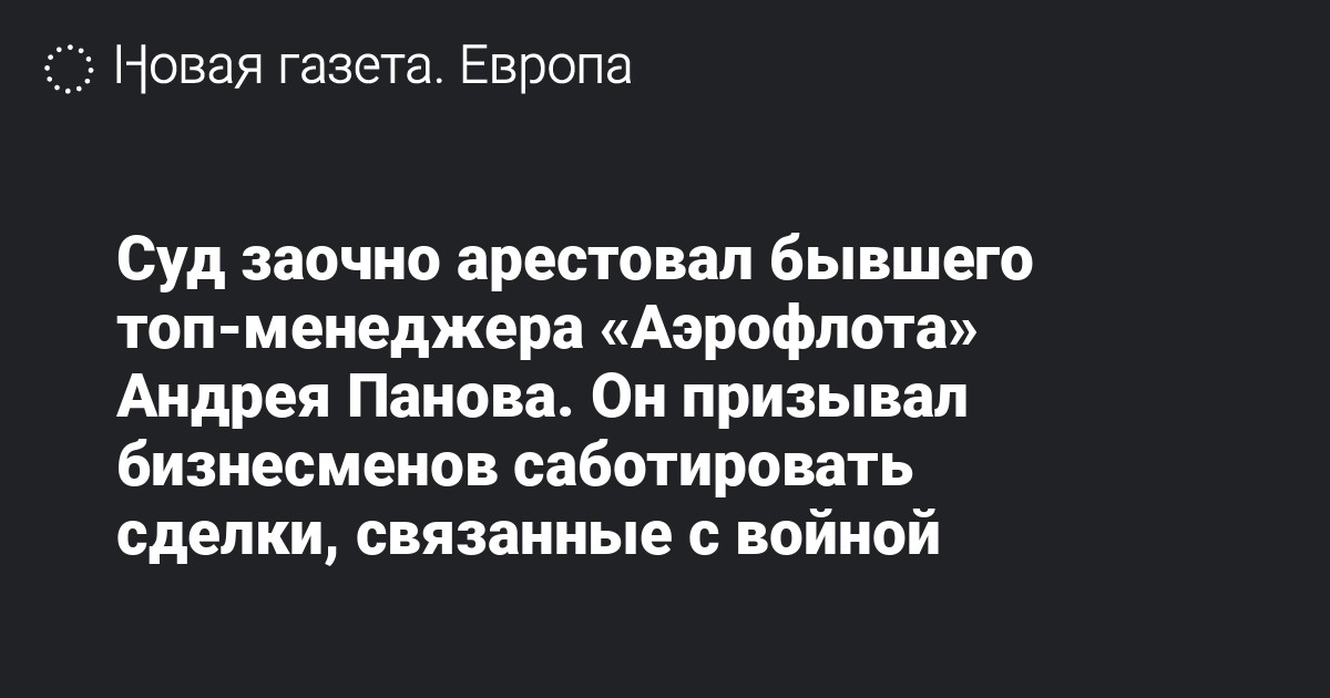 Суд заочно арестовал бывшего топ-менеджера «Аэрофлота» Андрея Панова. Он призывал бизнесменов саботировать сделки, связанные с войной