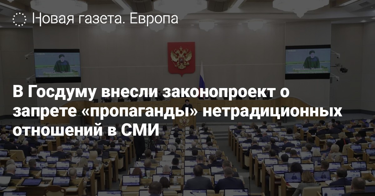 Депутаты предложили дополнить законы «Об информации» и «О СМИ»: в частности, в документы предлагается добавить строки о запрете распространения информации, «отрицающей семейные ценности, пропагандирующей нетрадиционные сексуальные отношения».
