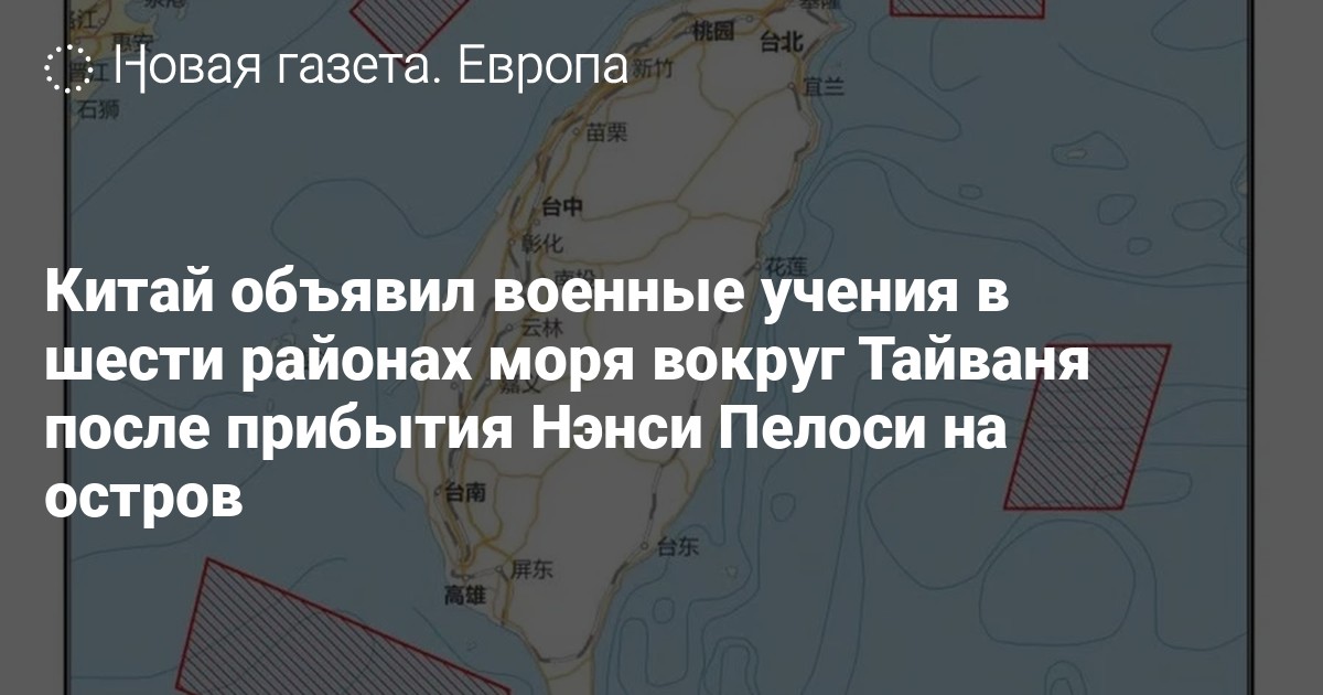 Китай анонсировал с четверга по воскресенье военные учения в шести районах моря вокруг Тайваня. Об этом сообщает агентство Синьхуа.
