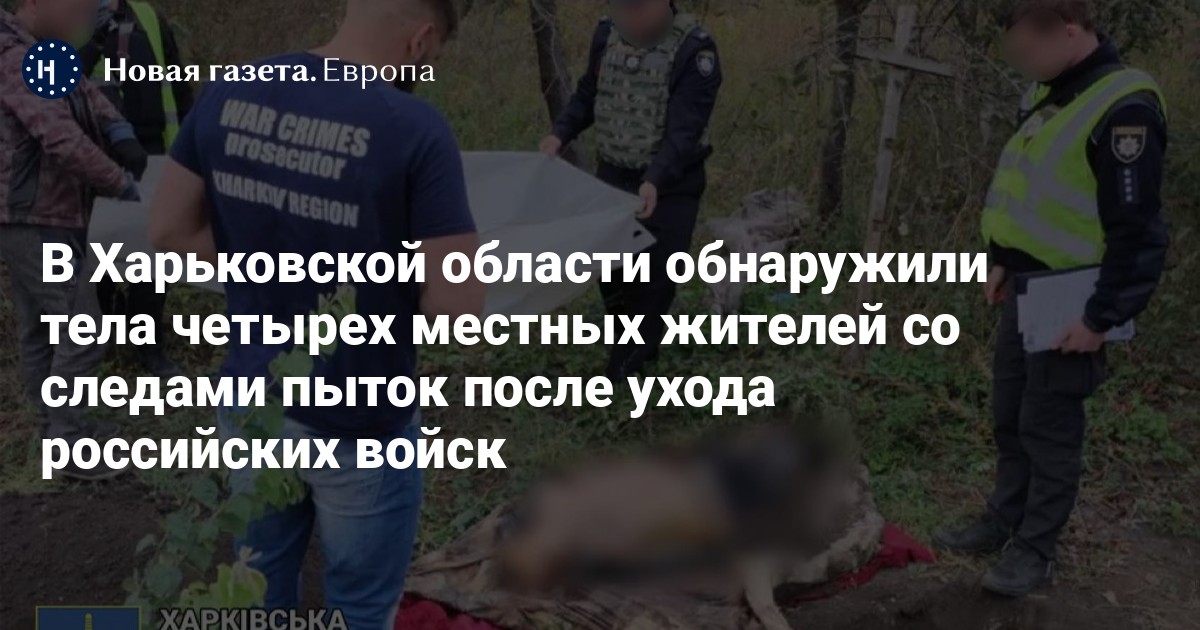 После ухода российских войск из села Железнодорожное в Харьковской области украинские правоохранители обнаружили тела четырех местных жителей со следами пыток. Об этом сообщает Офис генпрокурора Украины.