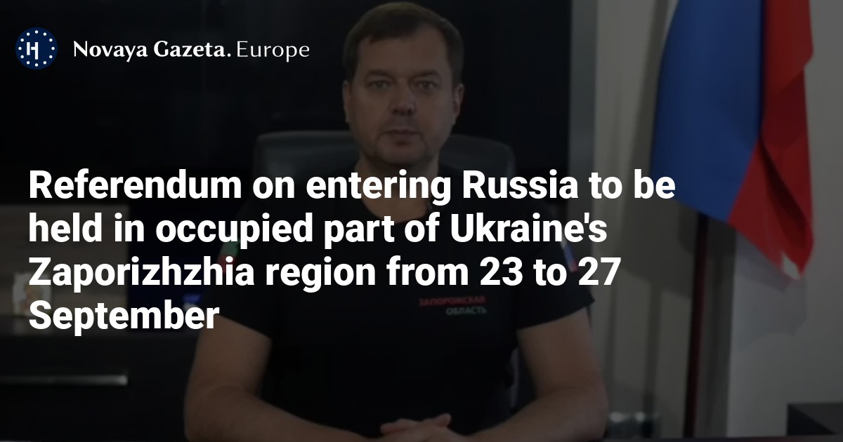 Referendum on entering Russia to be held in occupied part of Ukraine's Zaporizhzhia region from 23 to 27 September