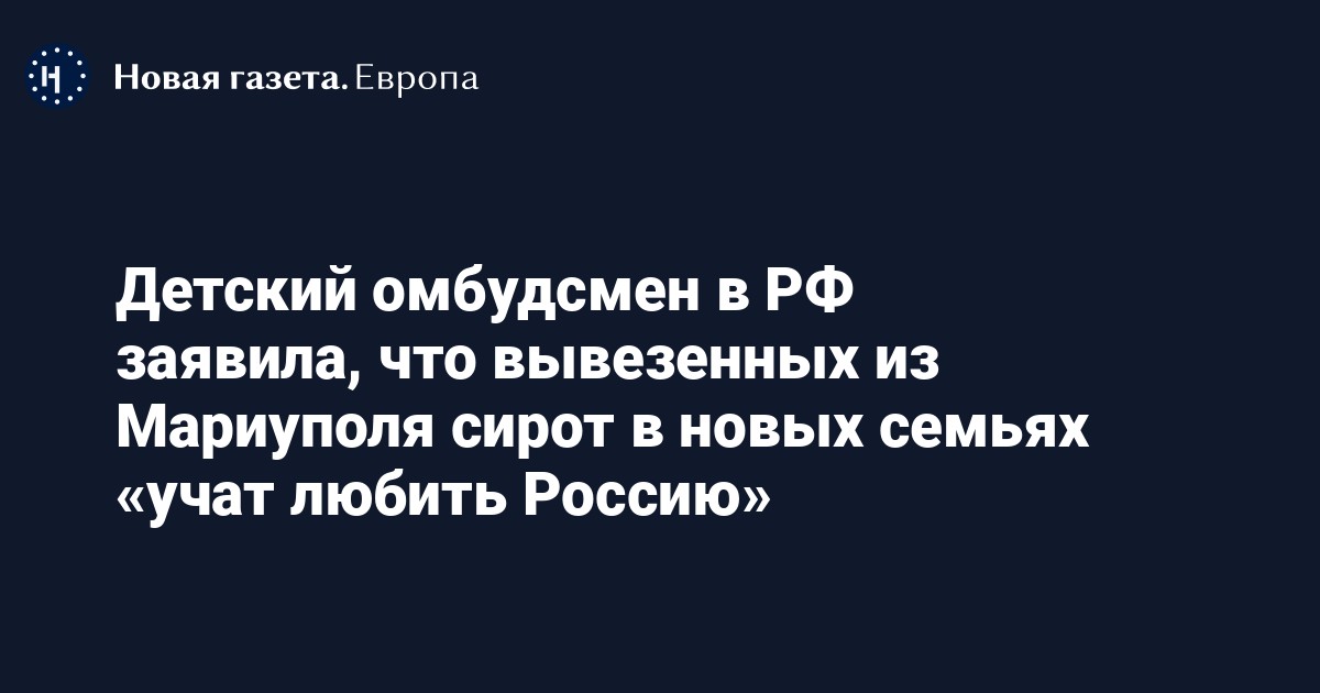 Уполномоченная по правам ребенка в России Мария Львова-Белова рассказала, что сирот из Мариуполя в новых семьях «учат любить Россию». Ее слова приводит Русская служба «Би-би-си».