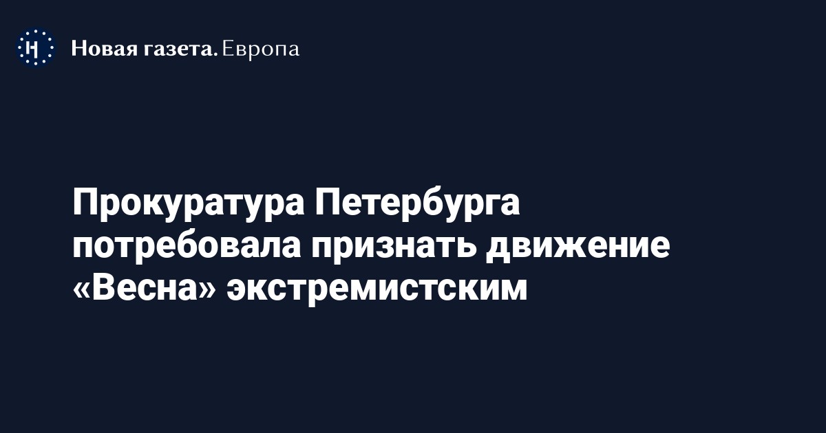 Прокуратура Петербурга подала иск о признании движения «Весна» экстремистской организацией и запрете его деятельности в России. сообщается на сайте ведомства.