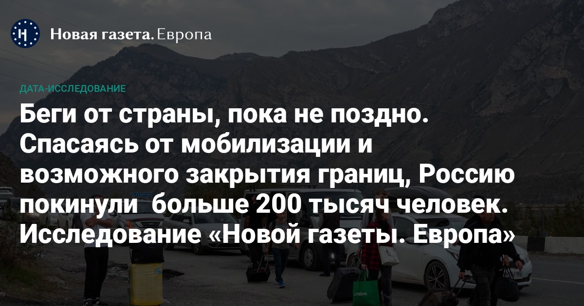 Спасаясь от мобилизации и возможного закрытия границ, Россию покинули больше 200 тысяч человек. Исследование «Новой газеты. Европа»