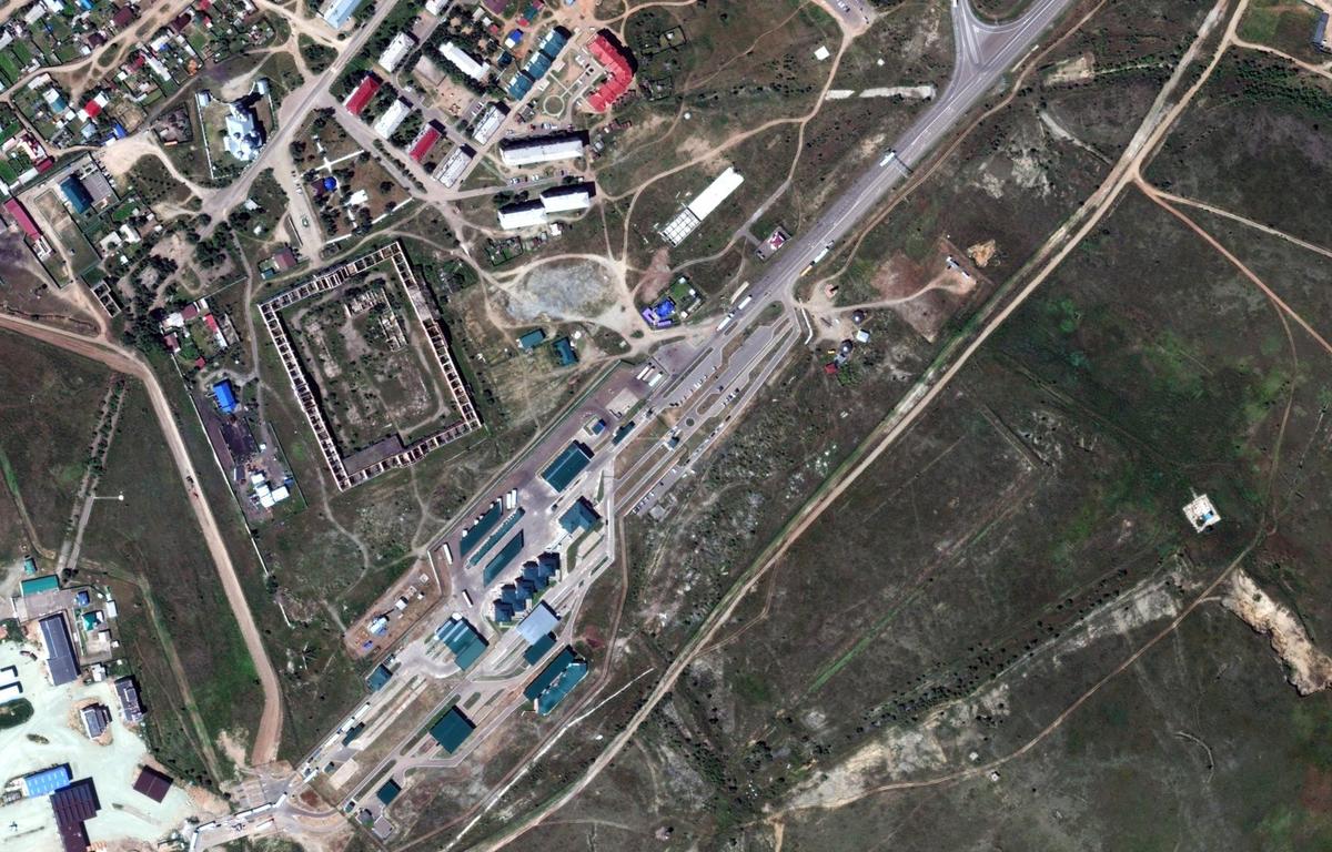 Пробка на пропускном пункте Верхний Ларс Источник: Maxar