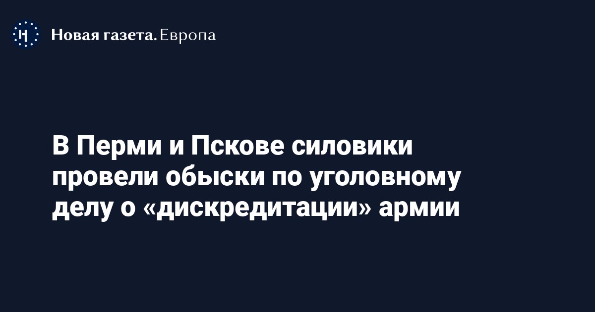 В Перми и Пскове силовики провели обыски по уголовному делу о «дискредитации» армии