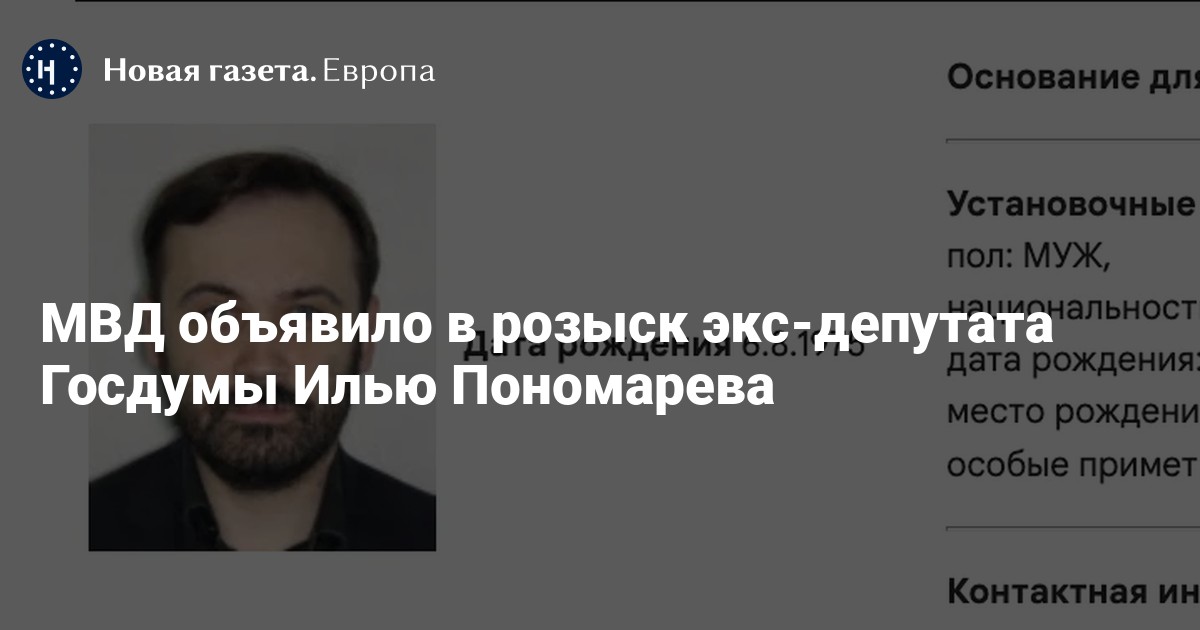 Бывшего депутата Госдумы Илью Пономарева объявили в розыск по уголовной статье. Информация об этом содержится в базе МВД.