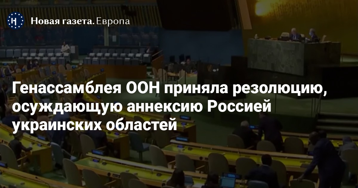 В ООН считают проведенные Россией «референдумы» «незаконными» и «противоречащими международному праву». Также во время заседания Россию призвали отменить свои решения об аннексии этих территорий.