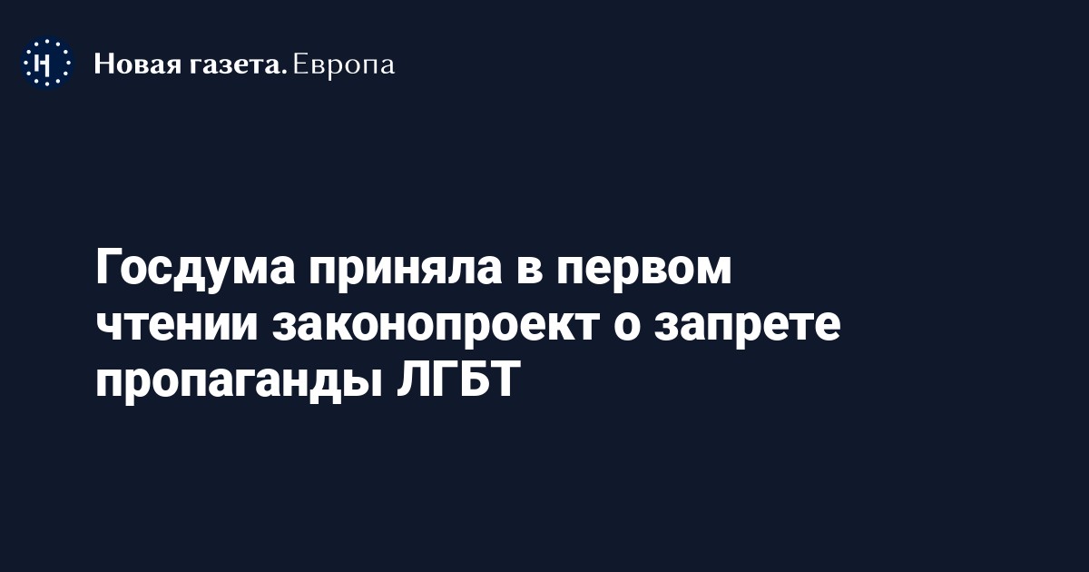 Депутаты Государственной думы единогласно приняли в первом чтении законопроект о запрете «пропаганды нетрадиционных сексуальных отношений». Об этом сообщается на сайте нижней палаты парламента.