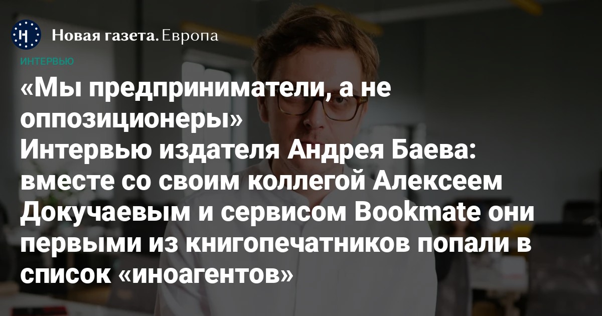 Российский Минюст продолжает расширять списки «иноагентов» в стране: каждую пятницу примерно десяток человек и/или структур получают этот дискриминационный статус — в подавляющем большинстве случаев основания для этого отсутствуют или выглядят крайне сомнительными. В списках уже давно не только журналисты или независимые российские медиа: «иноагентами» становятся музыканты, артисты, политики, правозащитники. В прошлую пятницу, 25 октября, этот статус впервые получили книгоиздатели: Андрей Баев, Алексей Докучаев — и созданный ими сервис Bookmate. Формальные правовые основания включения в реестр «иноагентов» пока неизвестны, однако почти никто не сомневается, что это возможная месть за резонансную книгу «Лето в пионерском галстуке», которую как раз и выпустило принадлежащее Баеву и Докучаеву издательство Popcorn Books. Специально для «Новой газеты Европа» Кирилл Фокин поговорил с Баевым о том, как он будет дальше с этим статусом.
