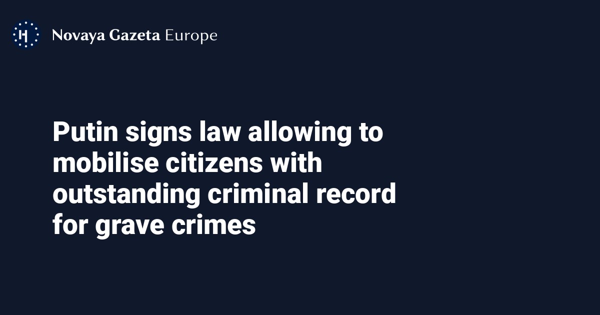 Vladimir Putin has signed a law that lifts the ban on drafting citizens with outstanding conviction for a grave crime. The document was published on the official laws website.