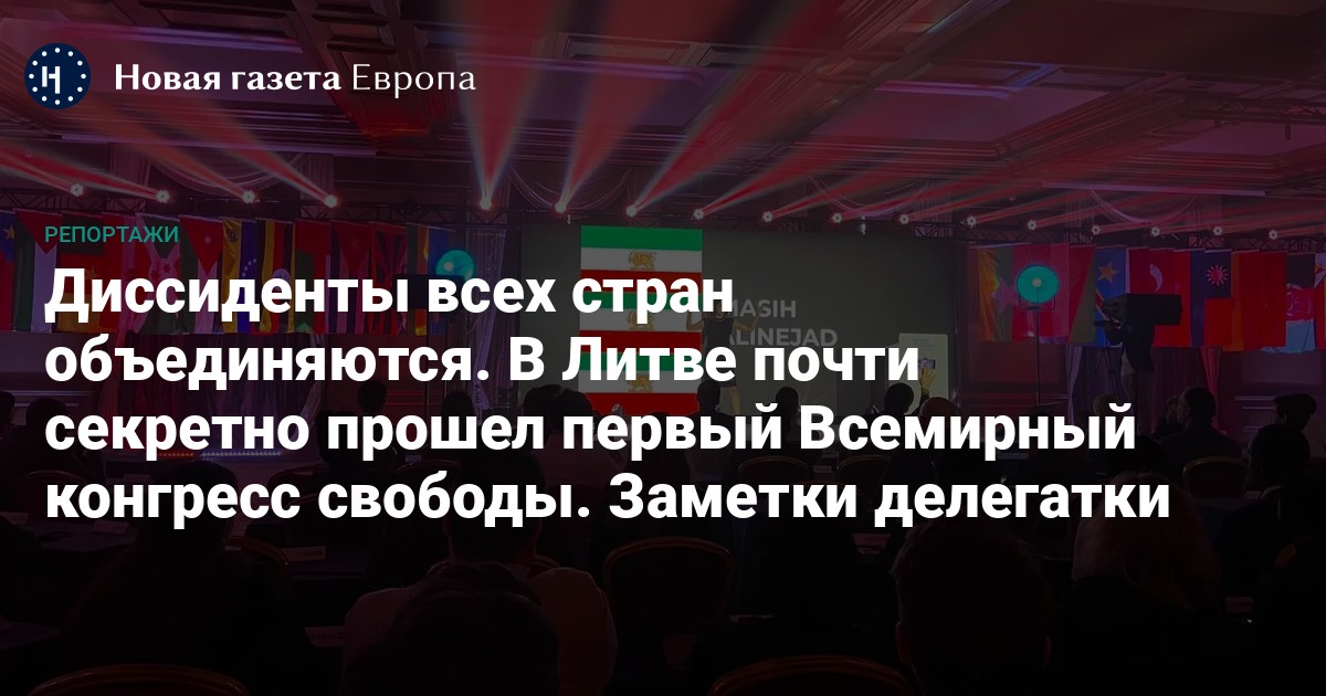 180 участников из 40 стран мира — это простая статистика Всемирного конгресса свободы (World Liberty Congress), который прошел в 20 километрах от Вильнюса 7-10 ноября. Как участник могу сказать: такое количество диссидентов со всего мира я видела впервые. Страны, граждане которых участвовали в конгрессе, на карте Freedom House наверняка были бы обозначены красным. Иран, Венесуэла, Ирак, Боливия, Бурунди, Камерун, Мьянма, Никарагуа и еще десятки диктаторских режимов. Разумеется, самое большое представительство — африканское. Из Европы — лишь Беларусь и Россия. Впрочем, и этих двух режимов хватает для того, чтобы весь регион не чувствовал себя в безопасности, особенно после 24 февраля.