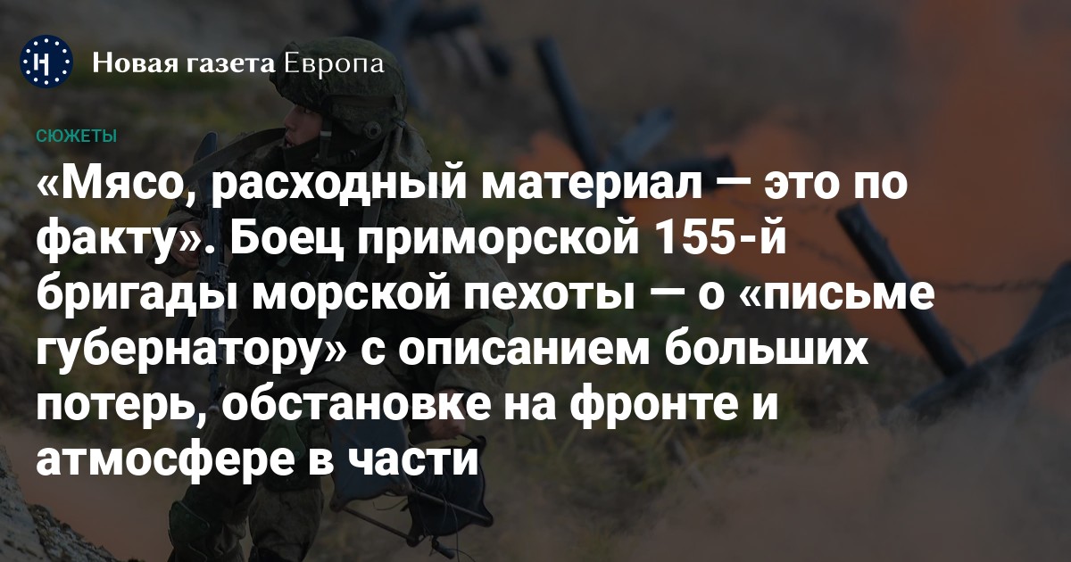 Корреспондент «Новой-Европа» побеседовала с военнослужащим десантно-штурмового батальона 155-й гвардейской отдельной бригады морской пехоты. Он из рядового состава, сам побывал на войне, имеет ранение. Имя и звание этого человека известны редакции. Публикуем его ответы на вопросы с минимальными сокращениями, в том числе в интересах безопасности, и цензурными правками.
