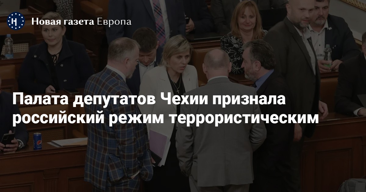 Палата депутатов Чехии (нижняя палата парламента) приняла резолюцию, в которой действующий российский режим назван террористическим. Об этом сообщается на сайте парламента.