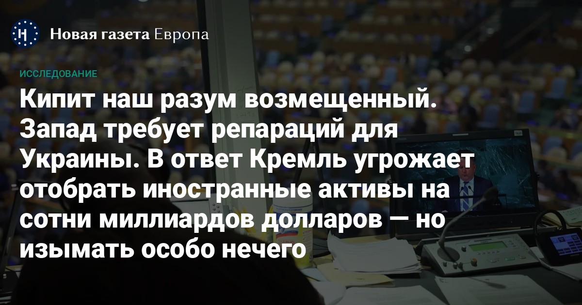 Генассамблея ООН 14 ноября приняла резолюцию, согласно которой Россия должна выплатить ущерб за агрессию против Украины. Государства, поддержавшие резолюцию, в самом начале войны заблокировали резервы Центрального банка России примерно на 300 млрд долларов и заморозили активы ряда олигархов. Зампред Совбеза Дмитрий Медведев в ответ на требование репараций предложил изымать частную собственность иностранных инвесторов в России. «Новая газета Европа» выяснила, какие иностранные активы может арестовать Кремль и к чему это приведет.