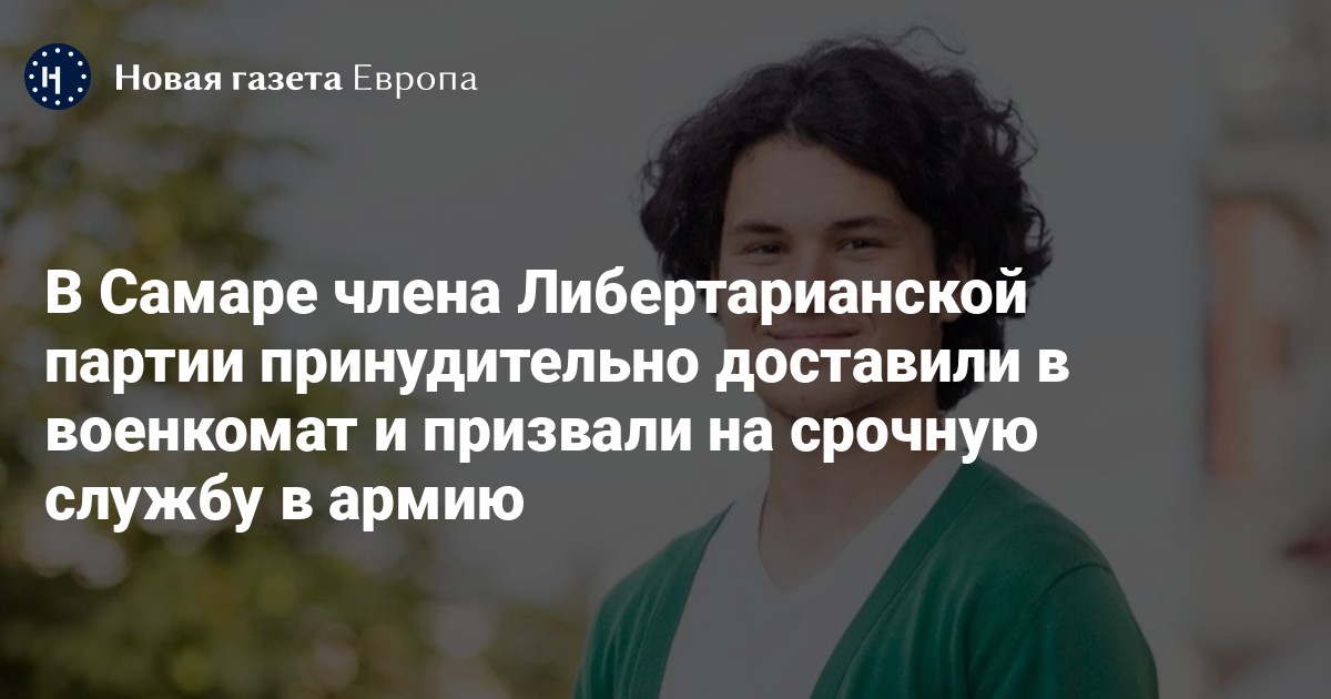 Военный комиссариат Советского и Железнодорожного районов Самары постановил призвать на срочную службу в армию члена Либертарианской партии России (ЛПР) Егора Бесчастнова. Об этом сообщает «Медиазона» со ссылкой на однопартийца Бориса Федюкина, а также самарское отделение партии.