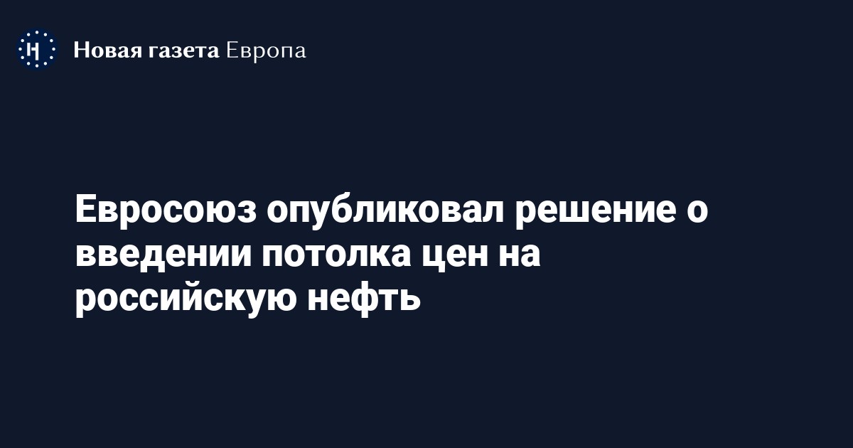 Евросоюз опубликовал решение о введении потолка цен на российскую нефть на уровне 60 долларов за баррель, которое вступает в силу 5 декабря. Текст документа находится в официальном журнале ЕС.