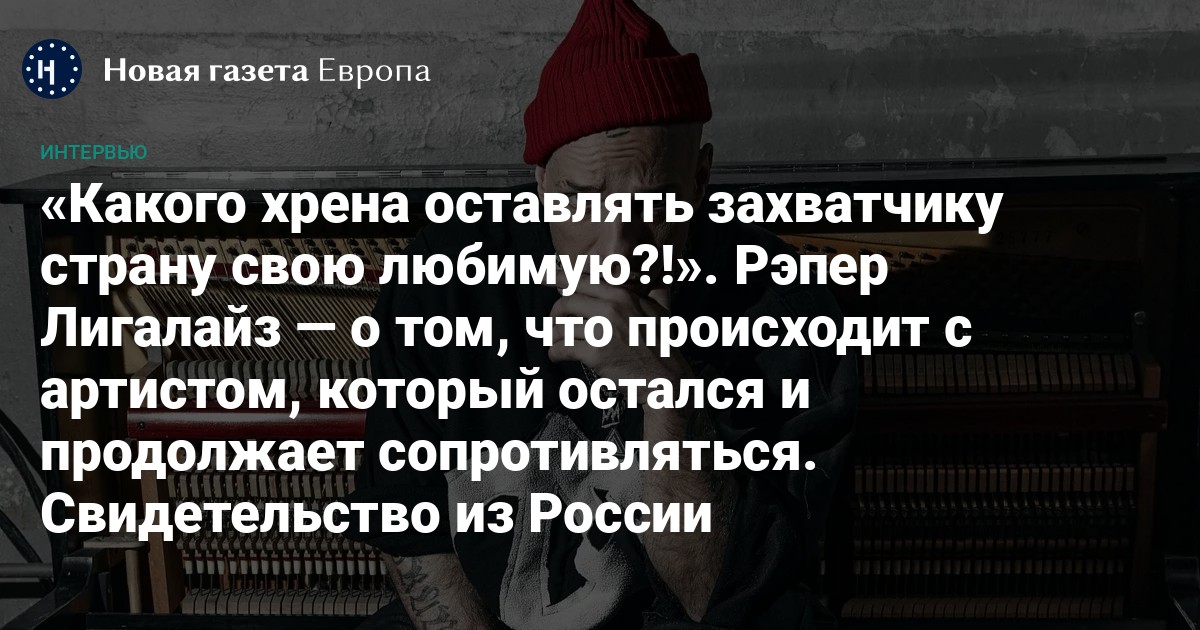 — А кто? Я предал себя, предал своих близких, потому что подвергаю их опасности в любом случае, предал коллег, которые уехали и бьются против режима. «Каста», Нойз, «Анакондас», Окси… Все очень крутые. Половина людей под этим интервью напишут: «А он сидит в России, он поддерживает кровавый режим». Но нет, я просто у себя дома. А какого хрена я должен уезжать? Какого хрена оставлять захватчику страну свою любимую?!