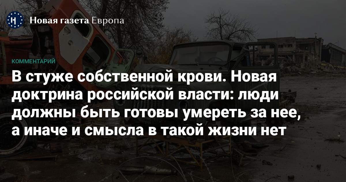 Новая доктрина российской власти: люди должны быть готовы умереть за нее, а иначе и смысла в такой жизни нет. Плакать по вашей гибели тоже никому не будет дозволено