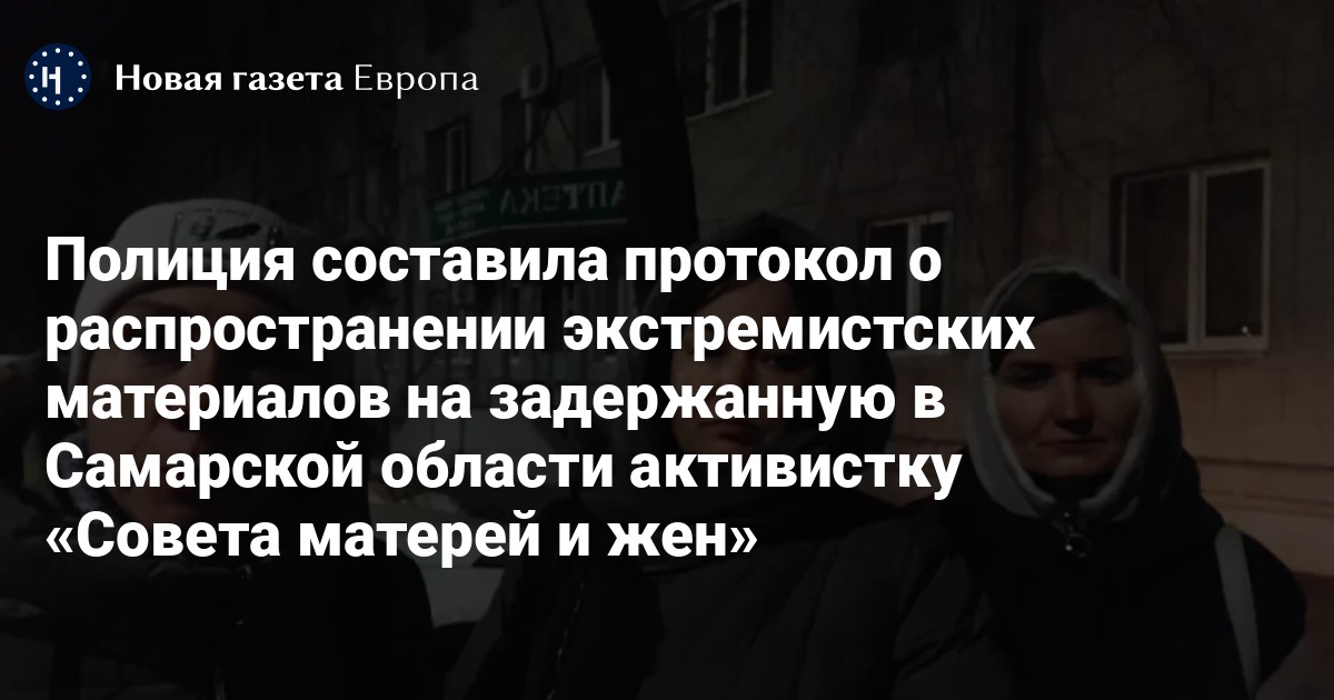 Полиция составила протокол о распространении экстремистских материалов на задержанную в Самарской области активистку «Совета матерей и жен»