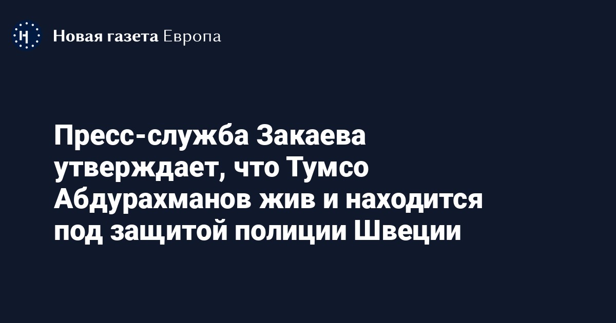 Оппозиционный чеченский блогер Тумсо Абдурахманов жив и находится под защитой шведской полиции. Об этом сообщает «Кавказ.Реалии» со ссылкой на пресс-службу правительства непризнанной Чеченской республики Ичкерия за рубежом.